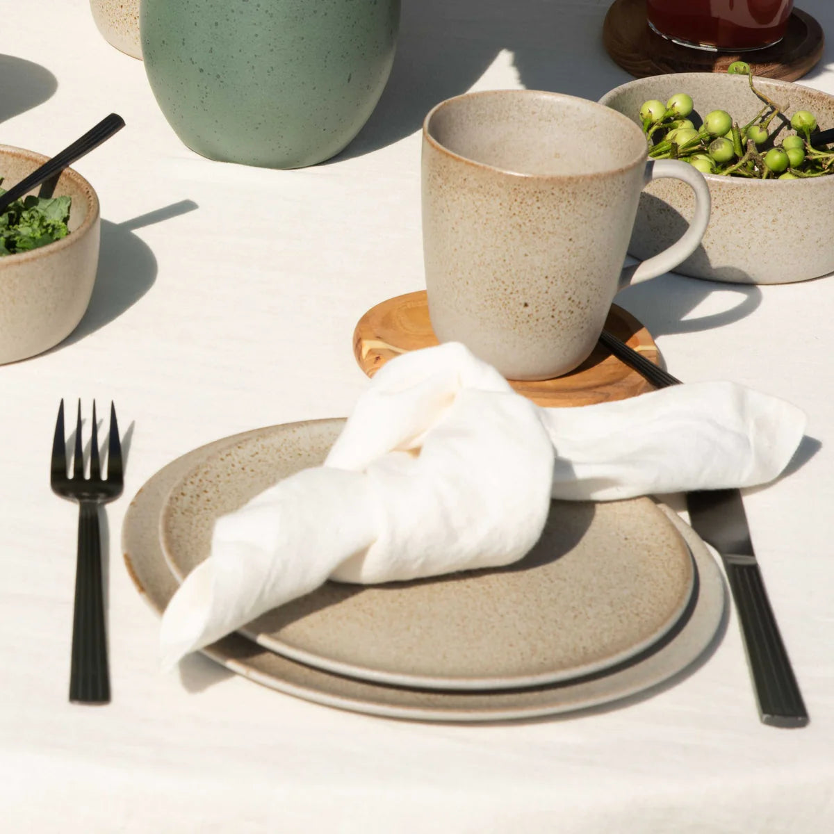 Lad os introducere dig til RAW glasuren ‘Sandy Beige’. Den smukke jordfarve lader tankerne vandre til de nordiske klitter langs kysten, hvor du kan mærke den friske luft og den nordiske natur. Sandy Beige er kendetegnet ved sin unikke glasur med små, brune, næsten gnistrende prikker, der varierer fra produkt til produkt. Det er et varmere touch til RAW universet og er perfekt til det stilfulde, moderne borddækning.