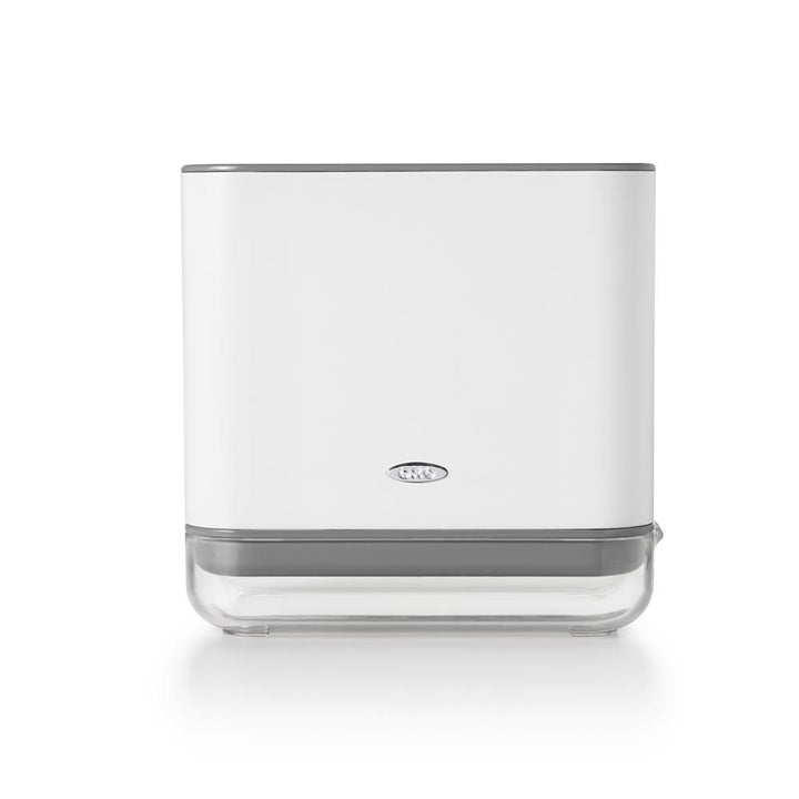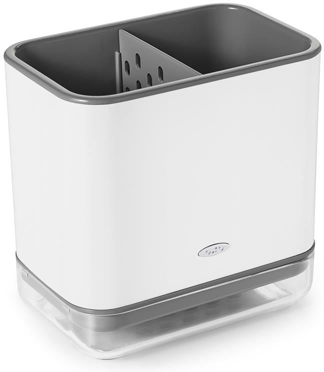 Tackle handwashing dishes once and for all with a Sinkware Caddy that does double duty. This crock-style organizer has two compartments designed for squeaky clean storage. The first compartment stores brushes and other cleaning tools upright for easy access; the second has an elevated sponge tray to keep two sponges dry and super handy. Both are perforated for airflow and to wick water away. Removable drip tray with a built-in spout comes apart for easy cleaning.