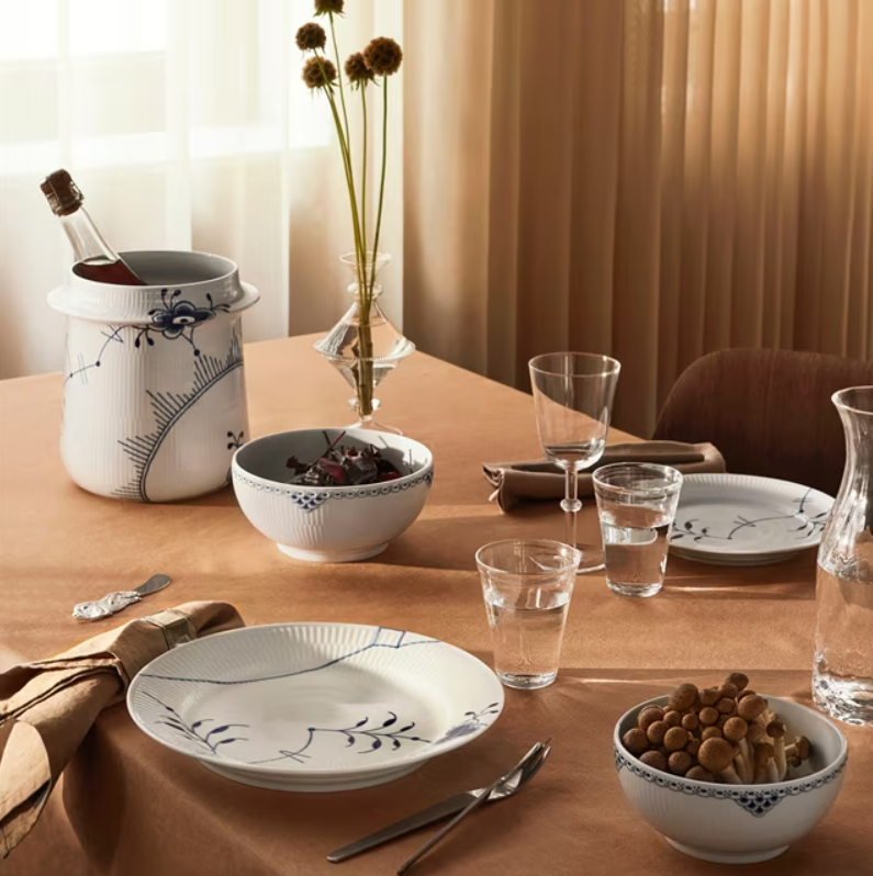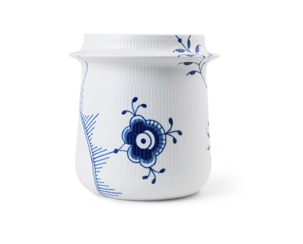 Blå Mega Riflet vinkøleren er en opdateret version af den klassiske vinkøler, designet til at holde din champagne eller vin kølig ved bordet. Det strømlinede design står i smuk kontrast til den grafiske dekoration fra Blå Mega Riflet, og den betydelige kant fungerer både som en stilfuld accent og et praktisk håndtag.