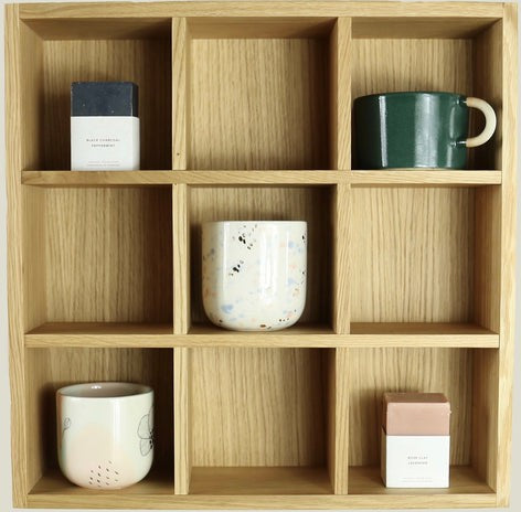 Vores kopkasse i egetræ har plads til 9 kopper.