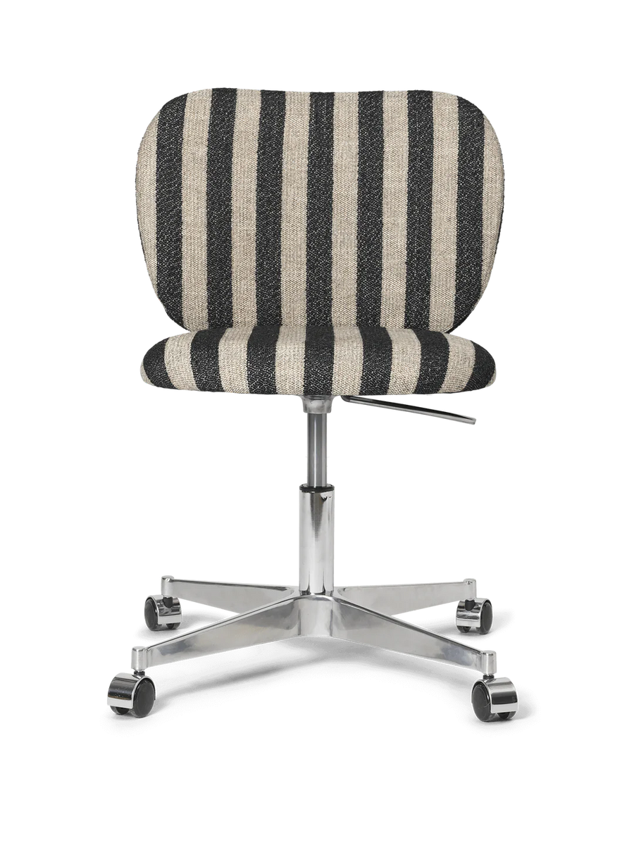Rico kollektionen byder kurver og volumen velkommen i et klassisk design, der er defineret af bløde linjer og et omfavnende udtryk. Rico Stol med hjul tilbyder en konstant følelse af kontrast og sidestiller det raffinerede krom med den tidløse, men behagelige varme fra det bløde bouclépolster. Denne alsidige stol har hjul, der gør den nem at flytte samt en integreret pumpe, så højden nemt kan justeres. Det diskret underspillede ryglæn fremhæver den minimalistiske æstetik og giver en raffineret og hyggelig fornemmelse.