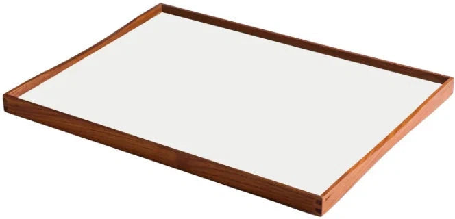 Turning Tray was designed in 1956 by Finn Juhl, bearing his trademark curved teak frame and precise corner joints. Made without handle bars, the tray’s curvature allows space to pick it up.