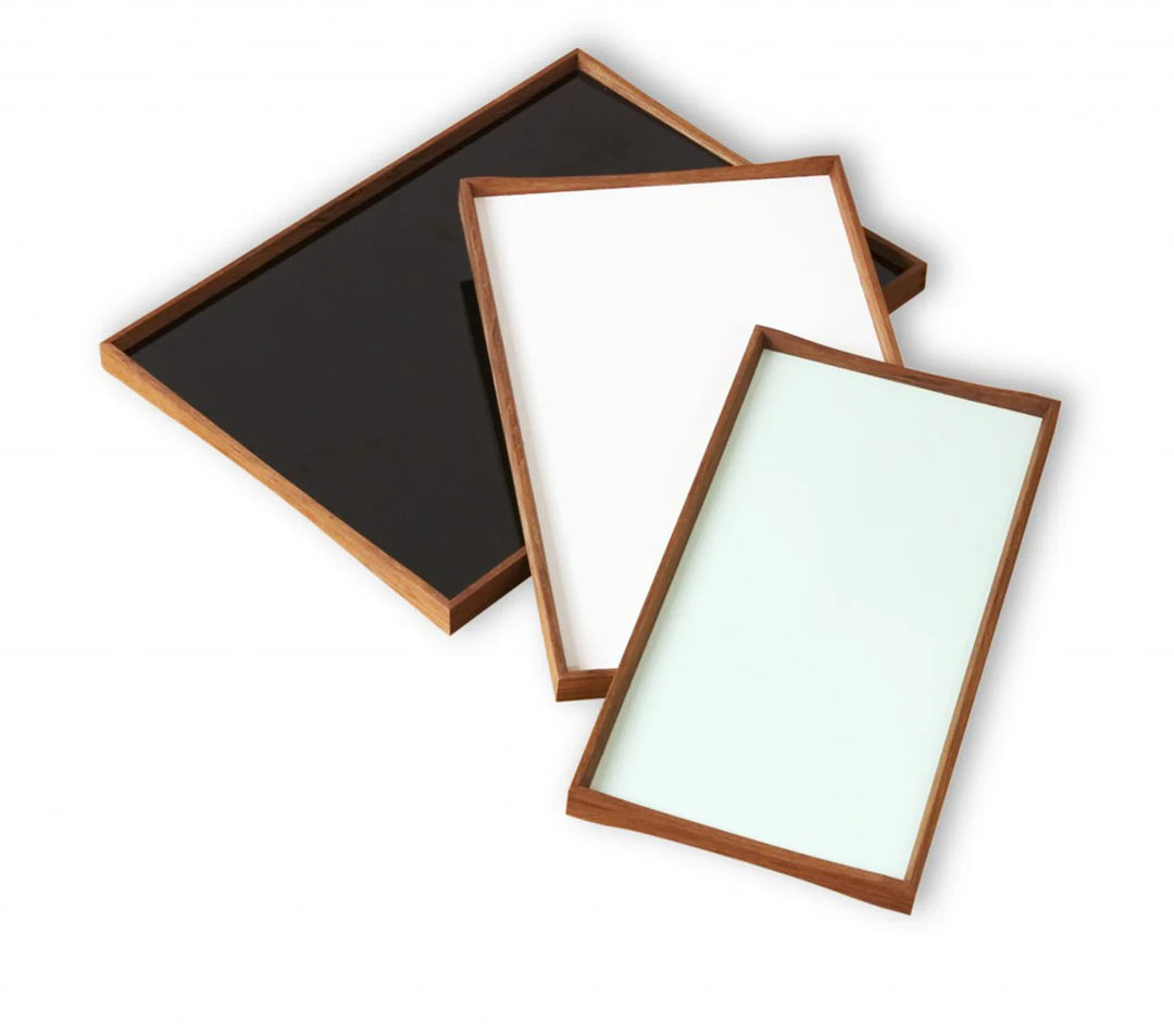 Designed as dual-sided, the Turning Tray boasts two glossy laminate sides held together by carefully crafted corner joints.These handmade trays are exactly to Finn Juhl’s specifications, with curves, colors and discreet details that all reveal his fantastic sense for design.