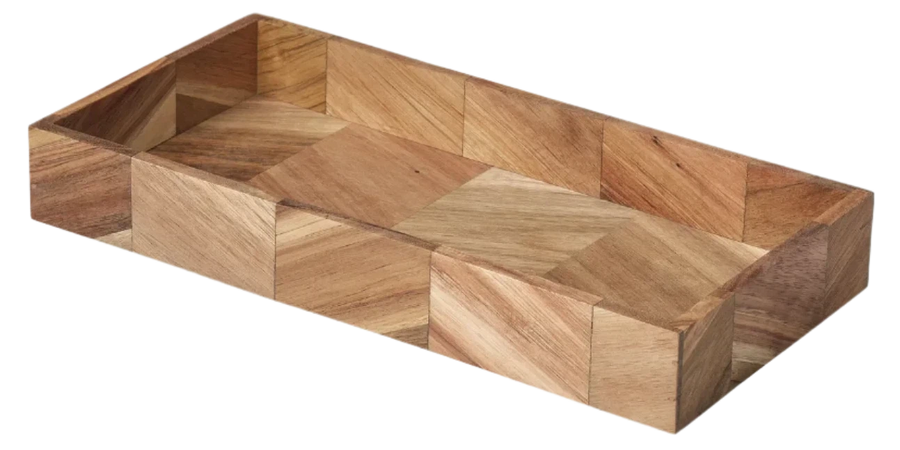 Med sit smukke sildebensdesign har bakken i akacietræ et klassisk, stilrent udtryk, der pynter i hjemmet. Bakken kan både bruges til små serveringer, som pæn opbevaring til olie, balsamico og krydderier i køkkenet eller til noget helt tredje, hvor du synes, at den passer ind. Bakken i akacietræ er ikke kun en smuk tilføjelse til din indretning, men også særdeles praktisk og god til at skabe et roligt og ryddeligt udtryk.