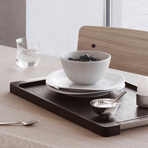 Den rette præsentation betyder meget for et godt måltid. Servér maden med stil med en bakke, der kombinerer funktion med design og godt håndværk. Bakken fra Bernadotte kollektionen er udført i røget egetræ og har håndtag i blankpoleret rustfrit stål, med de klassiske Art-Deco inspirerede riller.