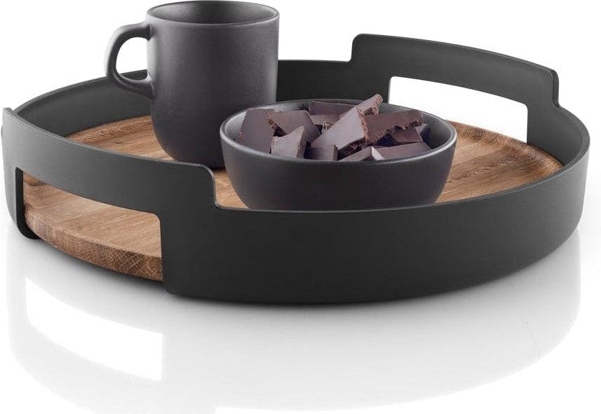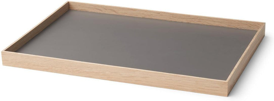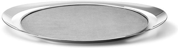 Den formfuldendte Cobra bakke indbyder til elegant servering af kaffe og drinks eller morgenmad på sengen. De bløde linjer i blankt rustfrit stål danner et skulputurelt udtryk og skaber en smuk kontrast til bakkens overflade, som er beklædt med gråt imiteret læder. Overfladen er slidstærk og skridsikker for at beskytte bakken mod ridser og minimere risikoen for spild, når du serverer drikkevarer.