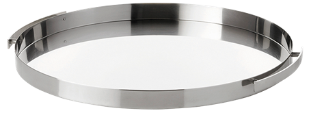 Cobra serveringsbakken er udført i blankt rustfrit stål og er beklædt med skridsikkert imiteret PU-læder i mikrofiber.