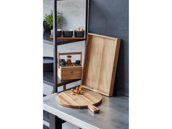 Klassisk og rummelig bakke i akacietræ. Med praktiske bærehåndtag og den perfekte størrelse til servering af eftermiddagskaffen i stuen, snacks og kølige drikkevarer på terrassen, morgenmad på sengen eller noget helt fjerde.
