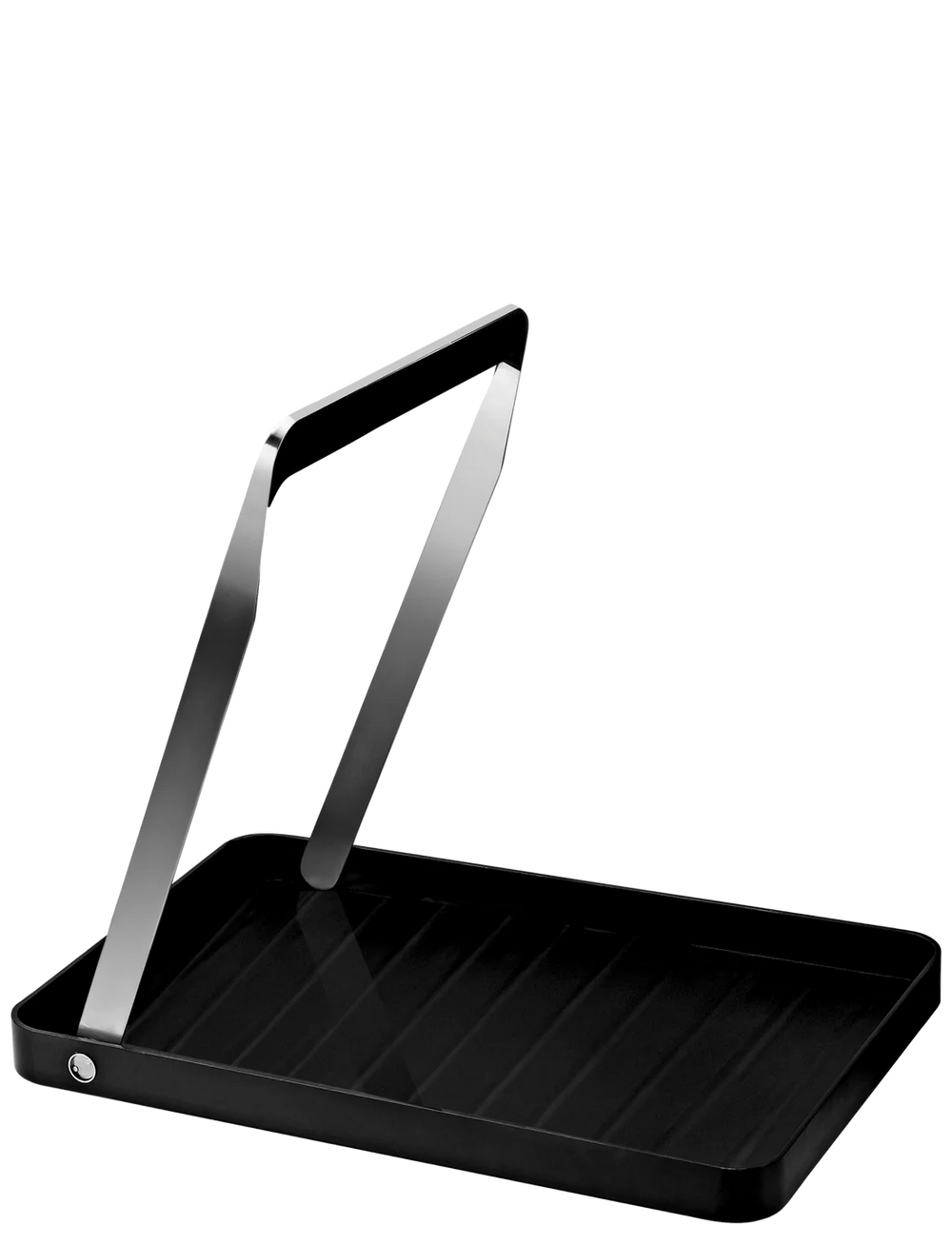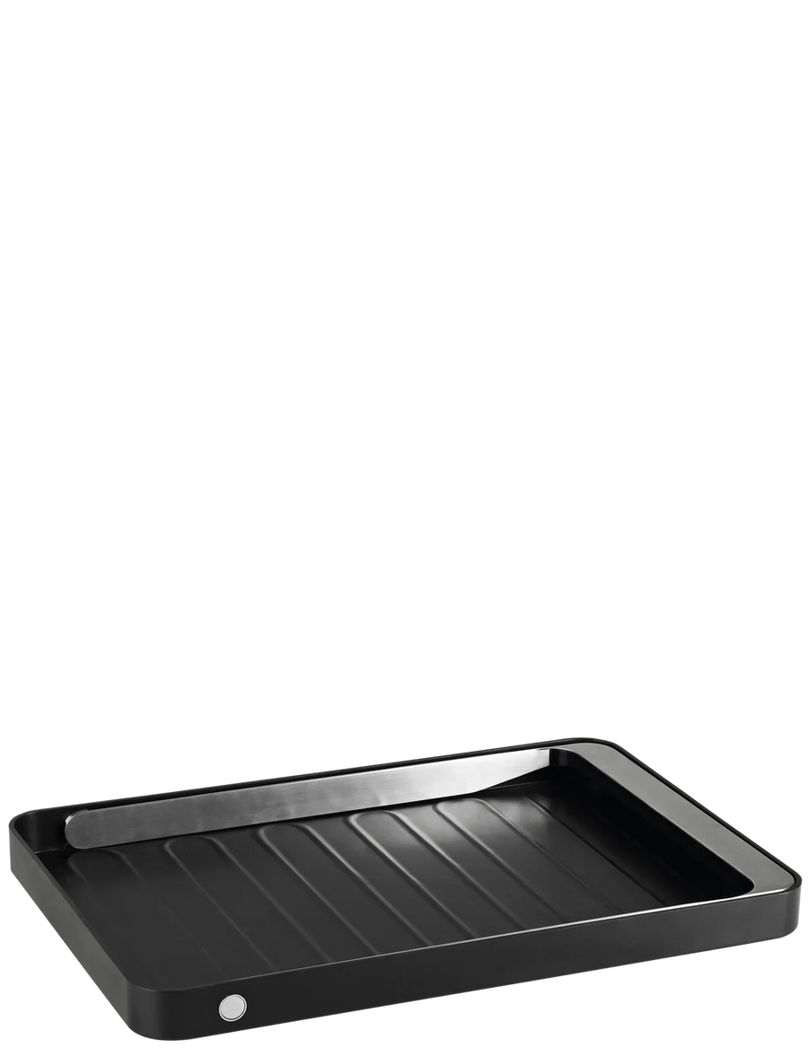 Take Away serveringsbakken er den praktiske medhjælper til at bære ting fra køkken til opholdsstue eller udendørs til en picnic. Grebet i rustfrit stål kan foldes ned i selve bakken og foldes op til en ergonomisk rigtig stilling, når bakken er i brug. Overfladen er gummibelagt så glas, karafler og tallerkner ikke glider.