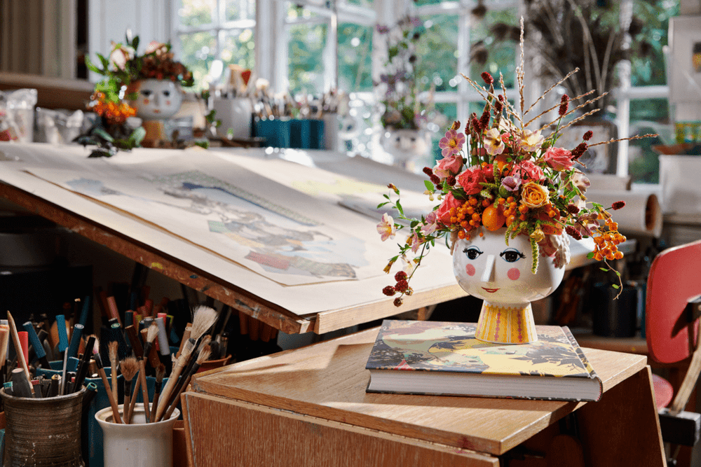 Bjørn Wiinblad eva urtapottur á fóti gult/pink