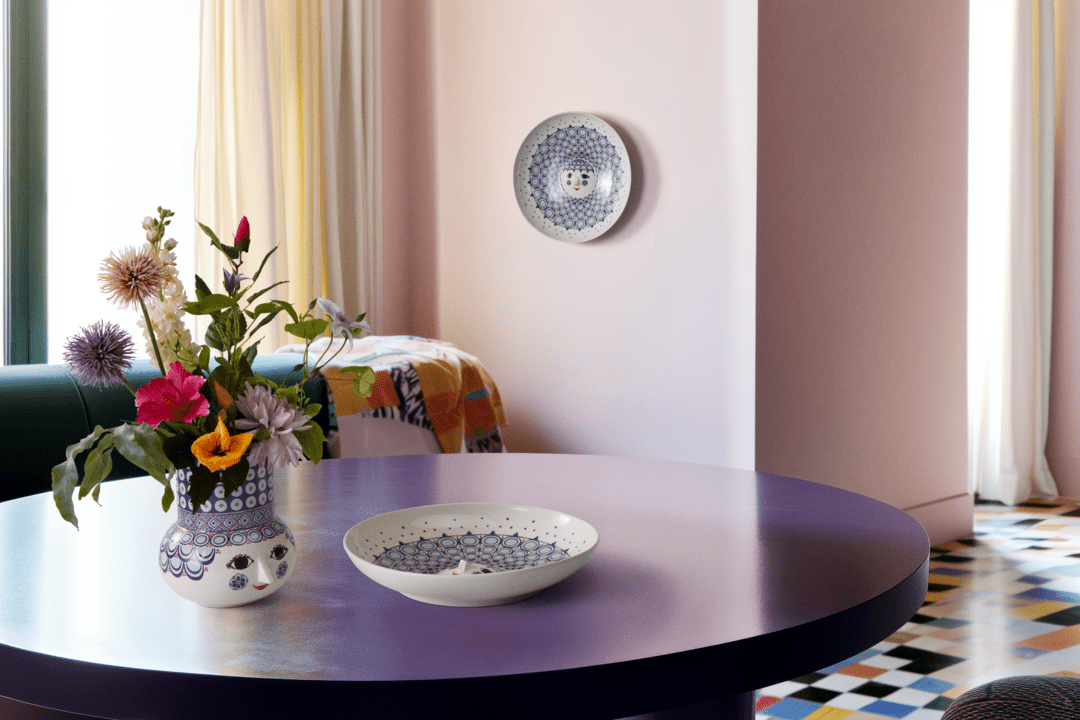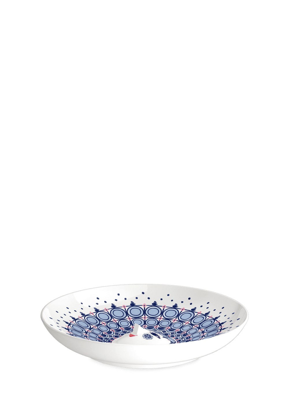 Udfold din farverige personlighed og skab plads til glæde med Bjørn Wiinblads Olga. Med sit søde smil, kulørte kinder og karakterfulde dekorationer rummer Olga på alle måder essensen af Bjørn Wiinblad som person og kunstner – også når hun tager form som et stort og dekorativt bordfad. Glad og drømmende skaber hun liv og personlighed i indretningen med sit poetiske udtryk og sine sprudlende farver. Og med det smukke og smilende Olga-bordfad fra Bjørn Wiinblad i overvejende mørkeblå nuancer med lyseblå toner og lyserøde prikker skaber du finurlighed i fuldt flor overalt i hjemmet. Bordfadet måler 33 cm i diameter og 6 cm i højden og er perfekt som et flot og figurativt fad til frisk frugt eller som et betagende som et unikt statement piece vil emme af personlighed og kreativ udfoldelse. Men hvem siger, at et bordfad overhovedet behøver at stå på bordet? For helt i tråd med Bjørn Wiinblads kunstneriske ånd er der næsten igen grænser for, hvor du kan placere Olga-fadet. Brug de to huller på bagsiden og hæng det op på væggen som en betagende dekoration, der vil emme af personlighed og kreativ udfoldelse. Uanset hvor du finder plads, så kan du i fulde drag nyde det søde, runde ansigt med de mandelformede øjne og den ikoniske trekantede næse, der nok nærmest er selve personificeringen af Bjørn Wiinblads kunst. Olga-bordfadet er lavet af skinnende glaseret keramik med farverige decals, og dekorationerne er en skøn blanding af originale Bjørn Wiinblad-mønstre, der i en skøn blå farvepalet giver dig et moderne og friskt udtryk. Bjørn Wiinblad var en livsglad kunstner med en stor og farverig personlighed, der gik sine egne veje og ikke var bange for at drømme og tænke stort. Den sjæl mærkes også til fulde i Olga, der hviler i sig selv og inviterer os til at udtrykke vores egen stil og personlighed i indretningen med udtryksfulde dekorationer skabt med inspiration i Bjørn Wiinblads originale kunstværker. En ting er sikkert: Det bliver ikke kedeligt, når Olga flytter ind.