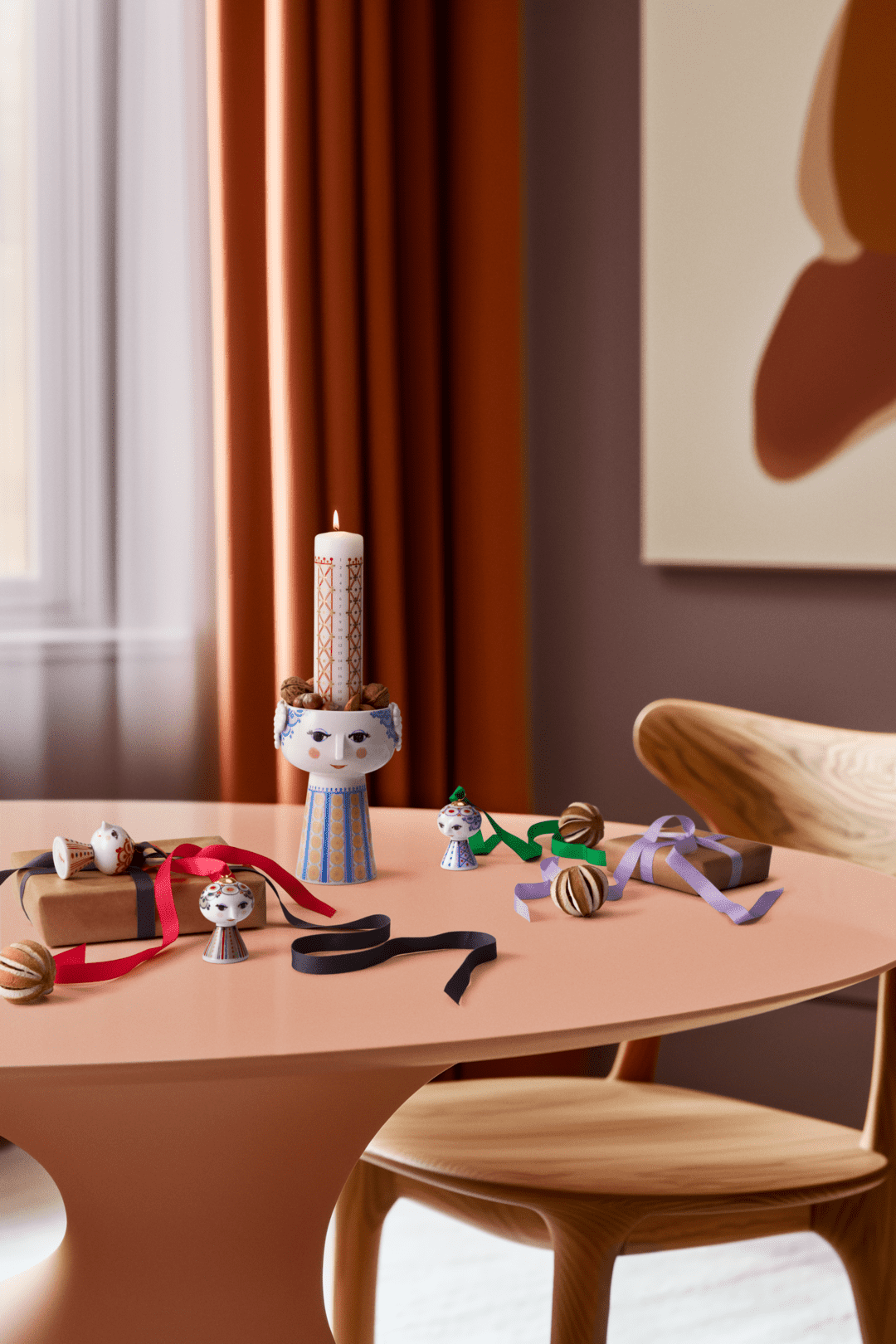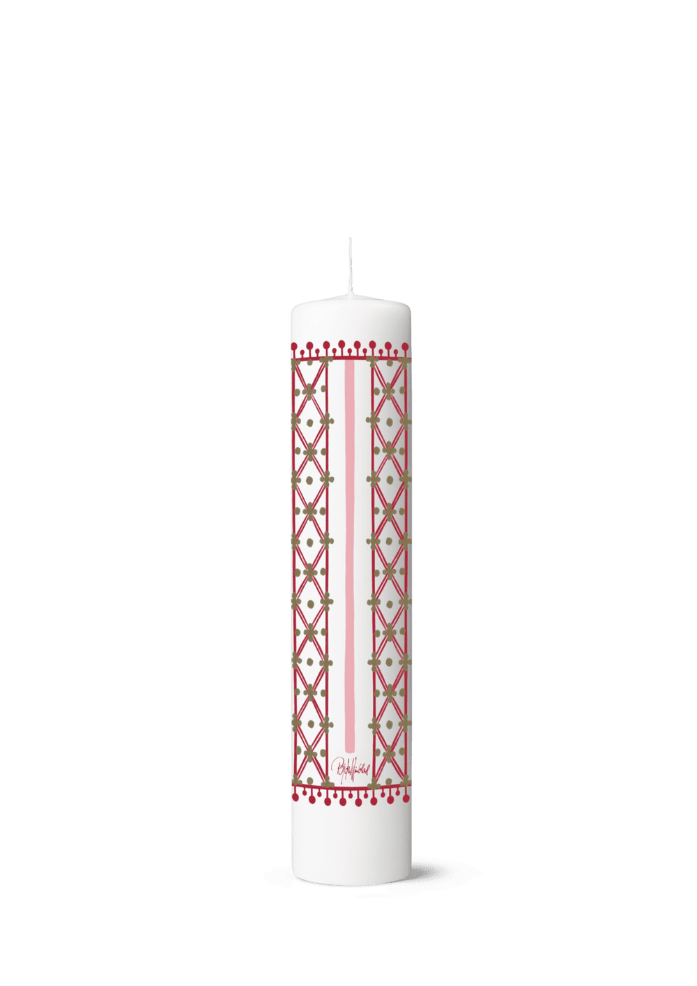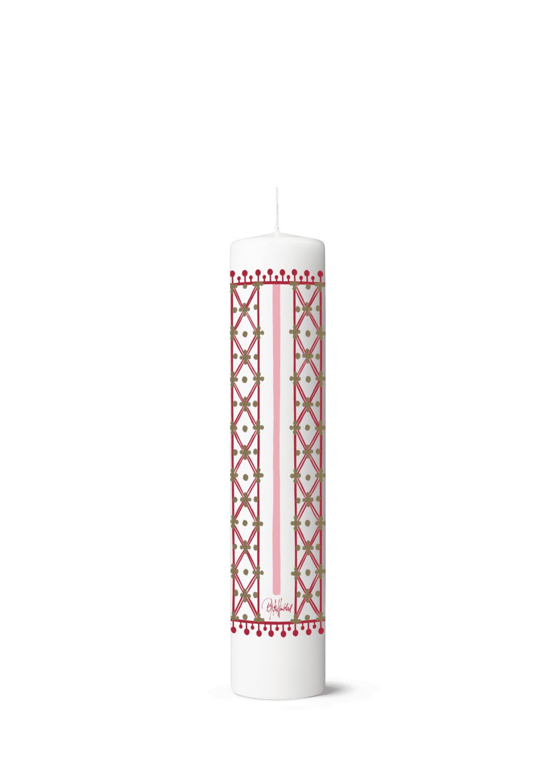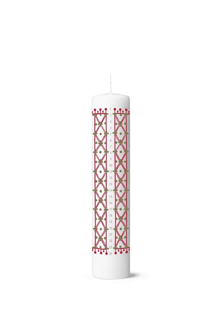 Udfold din farverige personlighed og lad kreativiteten lyse med Bjørn Wiinblads Eva. Med sine altid finurlige mønstre og farverige dekorationer rummer Eva-serien på alle måder essensen af Bjørn Wiinblad som person og kunstner – også når hendes unikke stil bliver fortolket som kalenderlys. Glad og drømmende skaber hun liv og sjæl i indretningen med sit poetiske udtryk og sine sprudlende farver. Dette fine Eva-kalenderlys måler 25 cm i højden og 5 cm i diameter og kommer med dekorationer inspireret af Eva-kjoler i rød, pink og med finurlige detaljer i metallisk guldfarve. Også de obligatoriske tal fra 1 til 24 pryder fra top til bund i metallisk guldfarve, så du kan gøre december endnu mere farverig og nyde ikonisk julestemning med ægte Wiinblad-magi, når du tænder op. Kalenderlyset er fremstillet i fuldraffineret specialvoks, der brænder smukt helt indtil den 24. december. Eva-kalenderlyset vil pynte med elegante farver og i en unik stil skabe masser af plads til glæde i hjemmet – præcis som Bjørn Wiinblad elskede det.