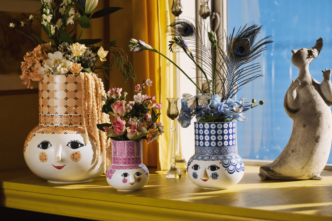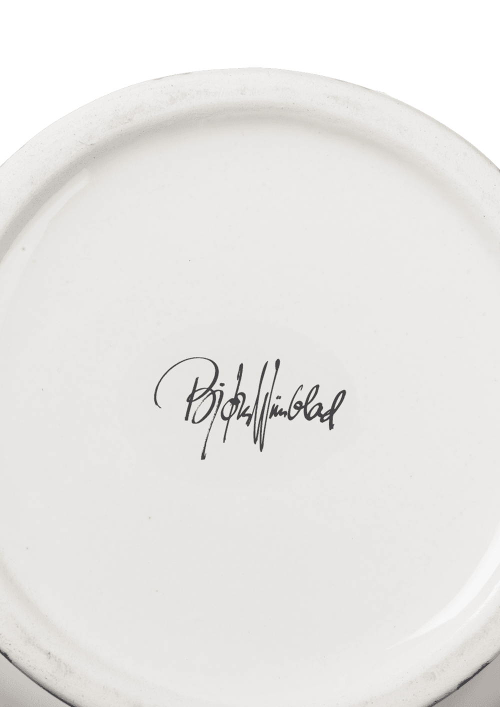 Udfold din farverige personlighed og lad kreativiteten blomstre med Bjørn Wiinblads Olga. Med sit glade smil, de blussende kinder og farverige dekorationer rummer Olga på alle måder essensen af Bjørn Wiinblad som person og kunstner – også når hun tager form som vase. Glad og drømmende skaber hun liv og personlighed i indretningen med sit poetiske udtryk og sine sprudlende farver. Olga-vasen er en nyfortolkning af en ikonisk vase, som Bjørn Wiinblad lavede i samarbejde med den keramiske fabrik Nymølle. Den har den samme cylindriske top som vasen fra Bjørn Wiinblads imponerende designarkiv og prydes af et sødt rundt ansigt med de mandelformede øjne og den ikoniske trekantede næse, der nok nærmest er selve personificeringen af Bjørn Wiinblads kunst. Den største vase i serien måler hele 35 cm i højden og smiler i al sin storslåede skønhed til os smukt dekoreret i en dæmpet sandfarve med støvede røde prikker. Alle Olga-vaser er lavet af skinnende glaseret keramik med farverige decals, og dekorationerne er en skøn blanding af originale Bjørn Wiinblad-mønstre, der i en skøn varieret farvepalet giver dig et moderne og friskt udtryk. Bjørn Wiinblad var en livsglad kunstner med en stor og farverig personlighed, der gik sine egne veje og ikke var bange for at drømme og tænke stort. Den sjæl mærkes også til fulde i Olga, der hviler i sig selv og inviterer os til at udtrykke vores egen stil og personlighed i indretningen med farverige blomsterbuketter, eksotiske planter og kreative dekorationer. En ting er sikkert: Det bliver ikke kedeligt, når Olga flytter ind.
