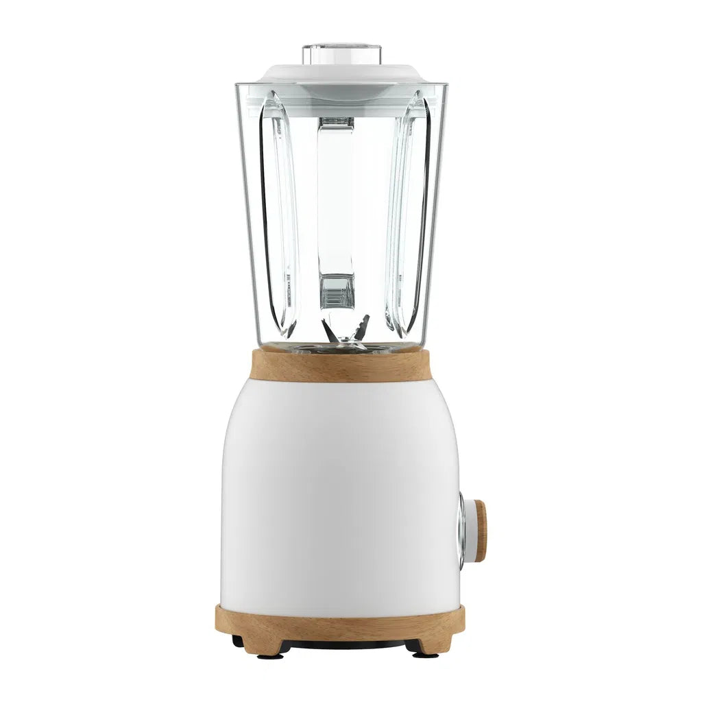 Witt Premium Element - Hvid er en kraftfuld 1000W blender med en 1,5L glaskande, der har seks knive og to hastighedsindstillinger samt en pulsfunktion, ideel til at lave silkebløde blandinger uden besvær.