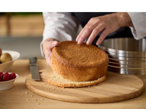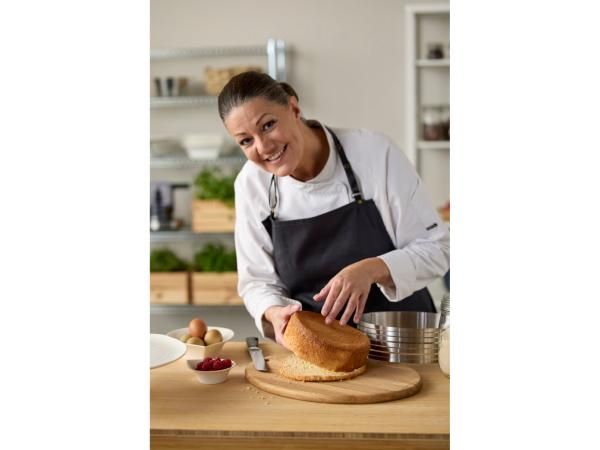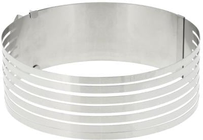 Justerbar kagedeler/kageskærer i rustfrit stål, som er perfekt når kagen skal skæres i ensartede lag. Placer kagedeleren over den færdigbagte kage og skær den i det ønskede mål. Kagedeleren er 8 cm høj og diameteren kan justeres mellem 24 og 30 cm. Tåler både ovn og fryser. Velegnet til opvaskemaskine. Vaskes i opvaskemaskine før første brug.