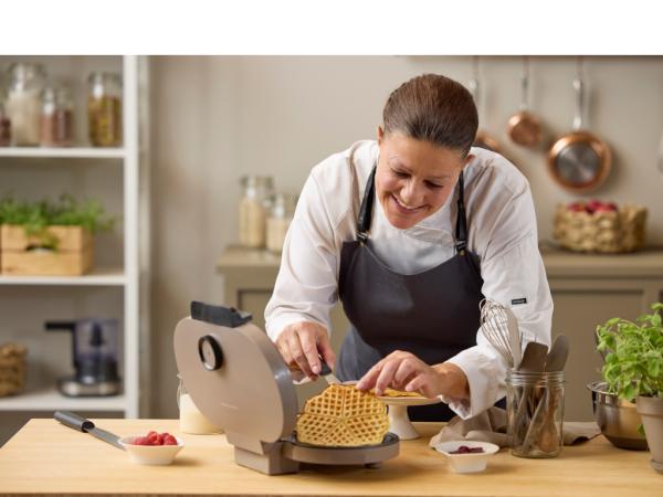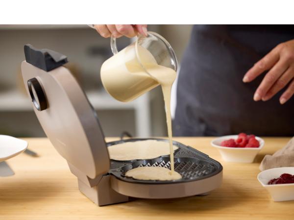 Giv morgenbordet eller eftermiddagshyggen et ekstra skud kærlighed med hjerteformede vafler, der vækker begejstring hos både store og små. Dobbelt vaffeljern med to plader, hver med en diameter på 15,5 cm, og en non-stick-belægning, som får dine vafler til at slippe nemt. Med justerbar temperatur, lysindikator og en smart dampventilering, som sikrer, at hver vaffel får den helt rigtige sprødhed.