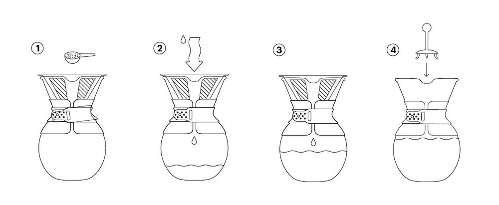 Pour over-brygning indgyder til en mere afslappet start på dagen. Denne innovative kaffebrygger med filter er nem at bruge og giver dig ultimativ kontrol over din kaffe. Det eneste, du skal bruge, er filterkaffe, varmt vand, fire minutter af din dag og lidt Bodum-magi – og så har du alle ingredienser til en lækker kaffe. Dette er perfekt pour over-brygning.