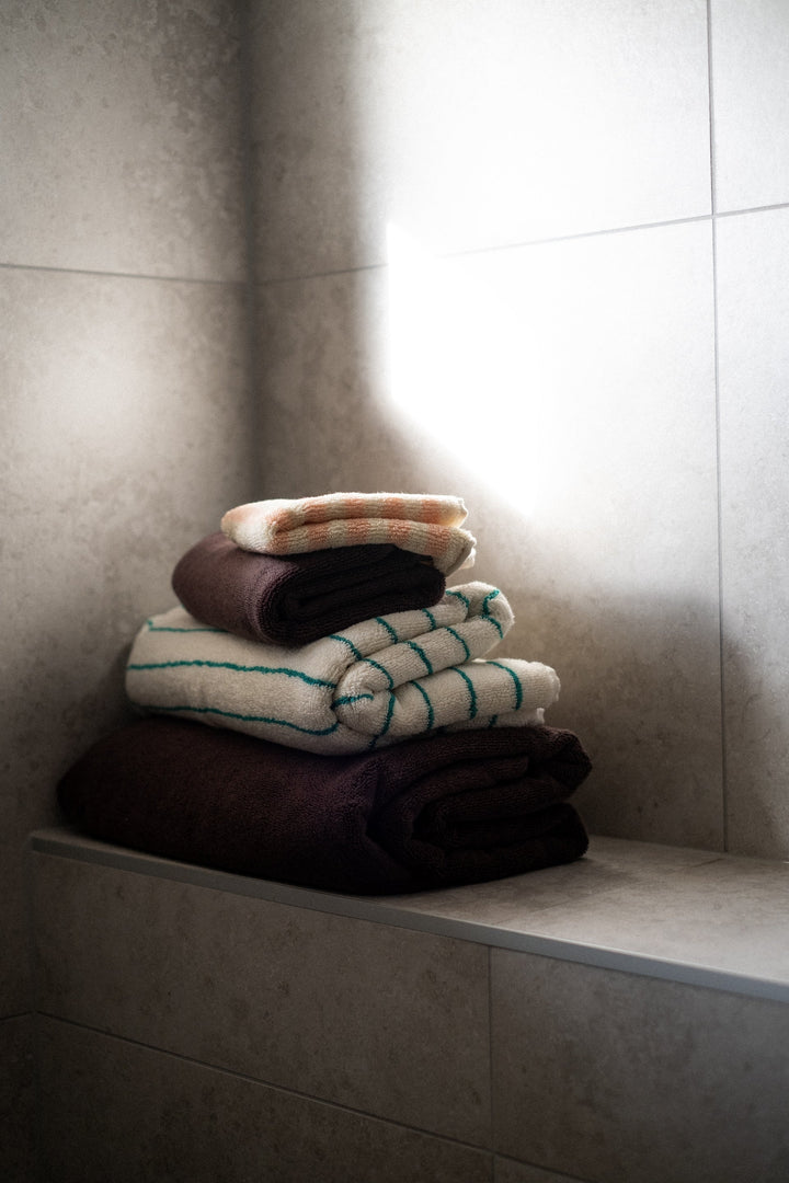 Naram håndklædet er et luksuriøst håndklæde. Det er lavet af 600 gsm kæmmet økologisk bomuld, der er OEKO-TEX® certificeret. Kæmmet bomuld er af en højere, næsten silkeagtig kvalitet, som gør håndklædet mere farveægte og lækkert. Den dobbelt-trådede vævning og de ekstra lange bomuldsfibre gør håndklædet meget absorberende, holdbart og åh-så blødt.