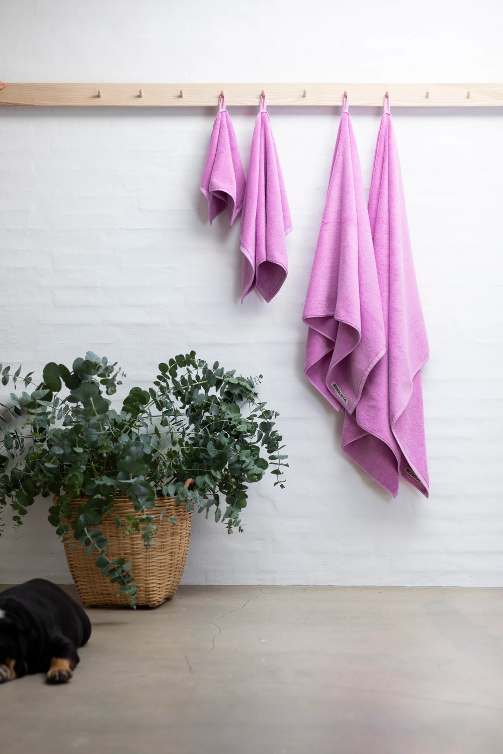 Naram håndklædet er et luksuriøst håndklæde. Det er lavet af 600 gsm kæmmet økologisk bomuld, der er OEKO-TEX® certificeret. Kæmmet bomuld er af en højere, næsten silkeagtig kvalitet, som gør håndklædet mere farveægte og lækkert. Den dobbelt-trådede vævning og de ekstra lange bomuldsfibre gør håndklædet meget absorberende, holdbart og åh-så blødt.