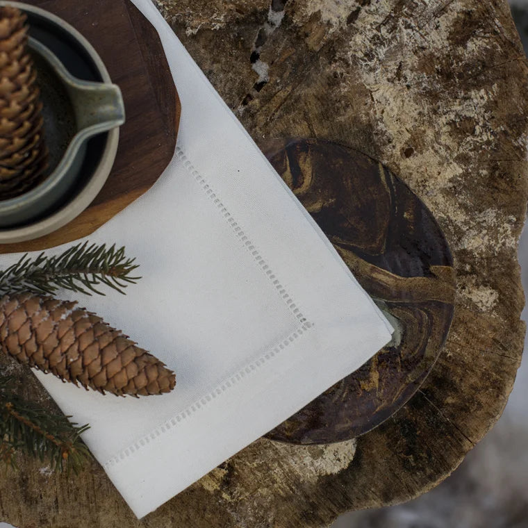I vores eksklusive designserie Nordic Way of Celebration finder du også disse smukke stofservietter i høj kvalitet syet af ægte flagdug, med broderet hulsøm. Den broderede hulsømskant gør at servietten ser smuk ud, uanset hvordan den foldes eller rulles.