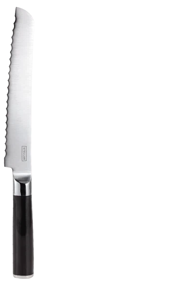 Det stærke, skarpe og lange blad på denne kniv gør det nemt at skære alle slags brød fra bløde boller til sprøde baguetter.