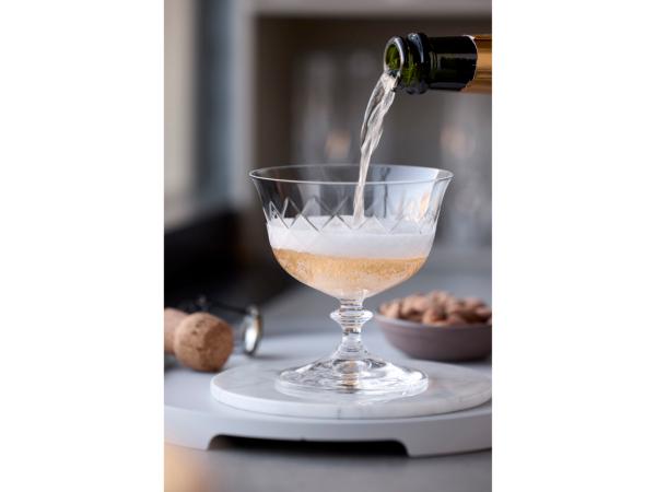 Eaton champagneskål, 28 cl, genfortolker det klassiske rudeformede mønster fra det ikoniske Eaton-glas, som Lyngby Glas skabte i 1960’erne. Designets tidløse æstetik forener klassisk charme og moderne stil og tilfører helt særlig stemning ved bordet. Fremstillet i krystalglas tilbyder Eaton en enestående klarhed og holdbarhed, der gør glasset til en fornøjelse at bruge – uanset om det er til en hyggelig hverdagsmiddag eller en festlig aften med vennerne. Glassets korte stilk giver ekstra stabilitet og gør det behageligt at holde ved. Eaton produceres i Europa og er skabt med stor præcision gennem en avanceret produktionsproces, der omfatter maskinslibning og polering. Resultatet er en høj klarhed og eksklusiv finish, der fremhæver glassets enkle elegance.