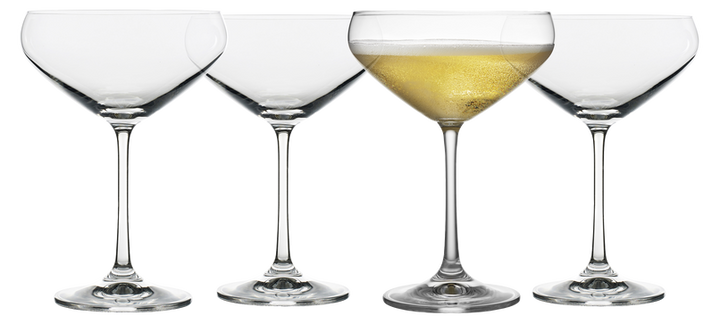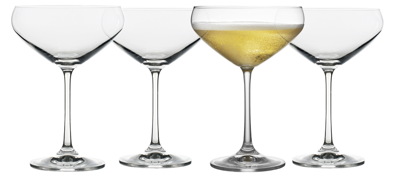 4 stk. Juvel champagneskål, 34 cl. Den høje stilk giver champagneskålen et smukt og stilfuldt udtryk, og det tidløse design gør det til et klassisk glas. Takket være dets alsidighed passer glasset til enhver borddækning. Det kan bruges både som champagneskål, cocktailglas og til portionsanretning af forretter og desserter. H 16,5 cm.