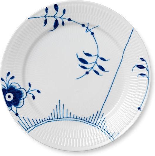 Denne Blå Mega Riflet Tallerken på 27 cm er smuk både som middagstallerken og som serveringsfad. Den håndmalede tallerken i Blå Mega Riflet Dekoration Nr. 2 er centreret omkring en håndmalet palmette. Eksperimentér med din borddækning ved at kombinere tallerkenen med tallerkener i Blå Mega Riflet Dekoration Nr. 6 eller steldele fra andre Royal Copenhagen stel.