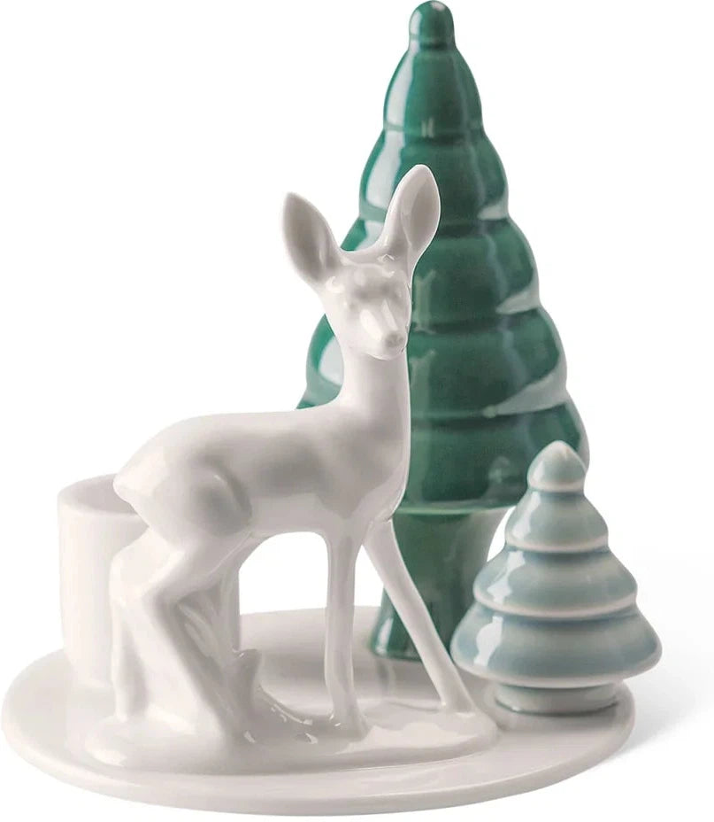 Lysestage med bambi og to træer.