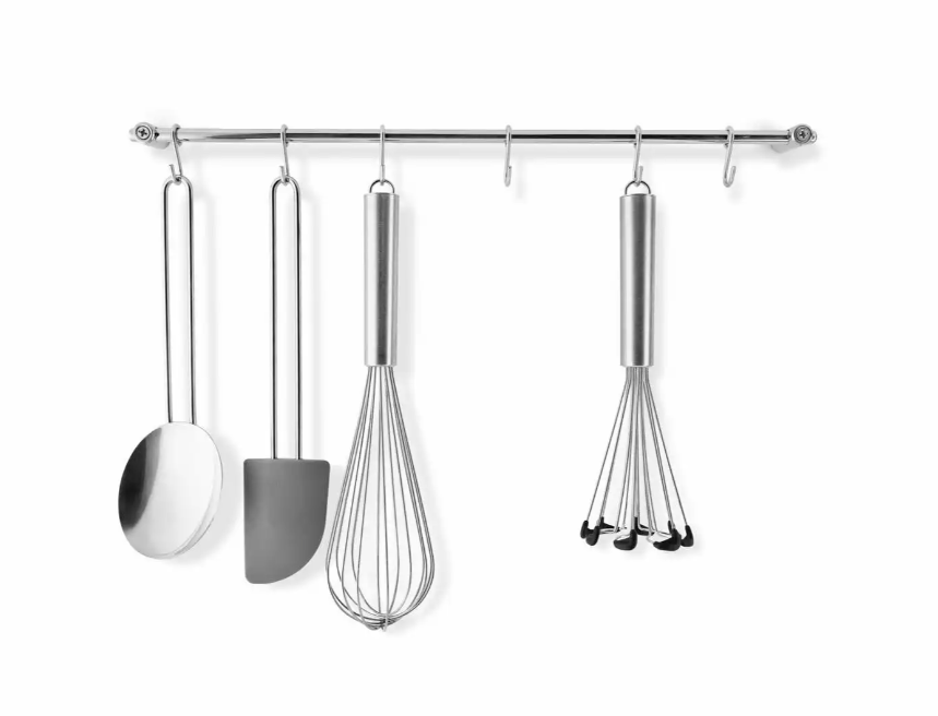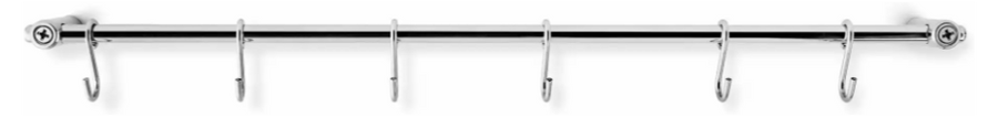 Den praktiske køkkenstang i rustfrit stål skaber ekstra væghængte opbevaringsmuligheder. Spar derfor skabsplads ved at hænge køkkenredskaber og pander i køkkenet eller tilmed håndklæder på badeværelset. Køkkenstangen kan nemlig også fungere som knagerække, tøjstativ eller bøjlestang i entréen og i soveværelset. Der medfølger seks S-kroge. S-kroge kan købes separat.