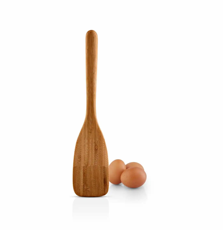 Brug spatelen til at håndtere hvert skridt i din madlavning, fra omrøring til servering. Spatelen er fremstillet i naturligt FSC-certificeret bambus, der har gennemgået en varmebehandlingsproces, som giver materialet en varm og rig farvetone. Spatelen har afrundede kanter, så du undgår ridser i overfladen på dine gryder og pander.