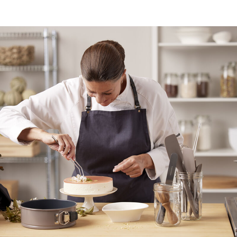 Springform i ekstra kraftigt kvalitetsstål med en bundtykkelse på 1 mm og en praktisk non-stick-belægning, som får de hjemmebagte lækkerier til at slippe formen lettere. Designet er elegant med en smuk latte farve på udvendig side. Springformen er perfekt til fx cheesecake, chokoladekage, gulerodskage samt lagkage- eller dessertbunde. Bør vaskes før brug første gang. Springformen kan tåle temperaturer op til max 230 °C.