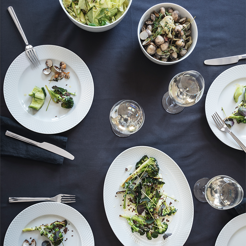 Det smukke Rhombe-serveringsfad fra Lyngby Porcelæn måler 32x24 cm. Det har en flot, oval form og er produceret i håndlavet, hvidt porcelæn med det karakteristiske Rhombe-mønster, der også findes på diverse andet porcelæn i samme serie. Mønstret er oprindeligt hentet i designarkivet hos Lyngby Porcelæn, hvor det første gang er brugt på produkterne i den populære Danild-serie fra 1961. Nu er mønstret tilbage, og de klassiske linjer sikrer en smuk og enkel borddækning med et strejf af luksus. Serveringsfadet kan bruges til både kolde og varme retter og både til hverdag og i forbindelse med særlige anledninger, hvor du gerne vil gøre lidt ekstra ud af borddækningen og serveringen. Rhombe serveringsfadet har 2 års brudgaranti.
