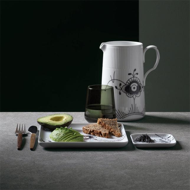 Som et friskt pust til traditionelt porcelæn bringer de firkantede tallerkener fra Sort Mega Riflet-stellet et strejf af kontemporær skarphed til bordet. Sorte og grå håndmalede elementer skaber en dramatisk effekt mod det hvide porcelæn med de genkendelige hvide rifler. Den mindre af de to størrelser af firkantede tallerkener på 9 cm er oplagt som asiet til små anretninger. Sort Mega Riflet er et smukt bevis på, at selv de mest klassiske traditioner kan tåle at blive udfordret – med skønhed som resultat. Stellets karakteristiske mønster af sorte og grå håndmalede nuancer indkapsler en dramatisk, monokrom kontrast til de hvide porcelænsoverflader. I Royal Copenhagens blå univers er Sort Mega Riflet et strejf af sofistikeret coolness.