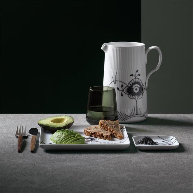 Med en kontemporær form, der er håndmalet med det monokrome mønster fra Sort Mega Riflet, er den største af de to firkantede tallerkener i stellet en nutidig fortolkning af klassisk porcelæn. Den firkantede tallerken på 20 cm er et forfriskende bud på servering af større anretninger eller fællesretter. Sort Mega Riflet er et smukt bevis på, at selv de mest klassiske traditioner kan tåle at blive udfordret – med skønhed som resultat. Stellets karakteristiske mønster af sorte og grå håndmalede nuancer indkapsler en dramatisk, monokrom kontrast til de hvide porcelænsoverflader. I Royal Copenhagens blå univers er Sort Mega Riflet et strejf af sofistikeret coolness.