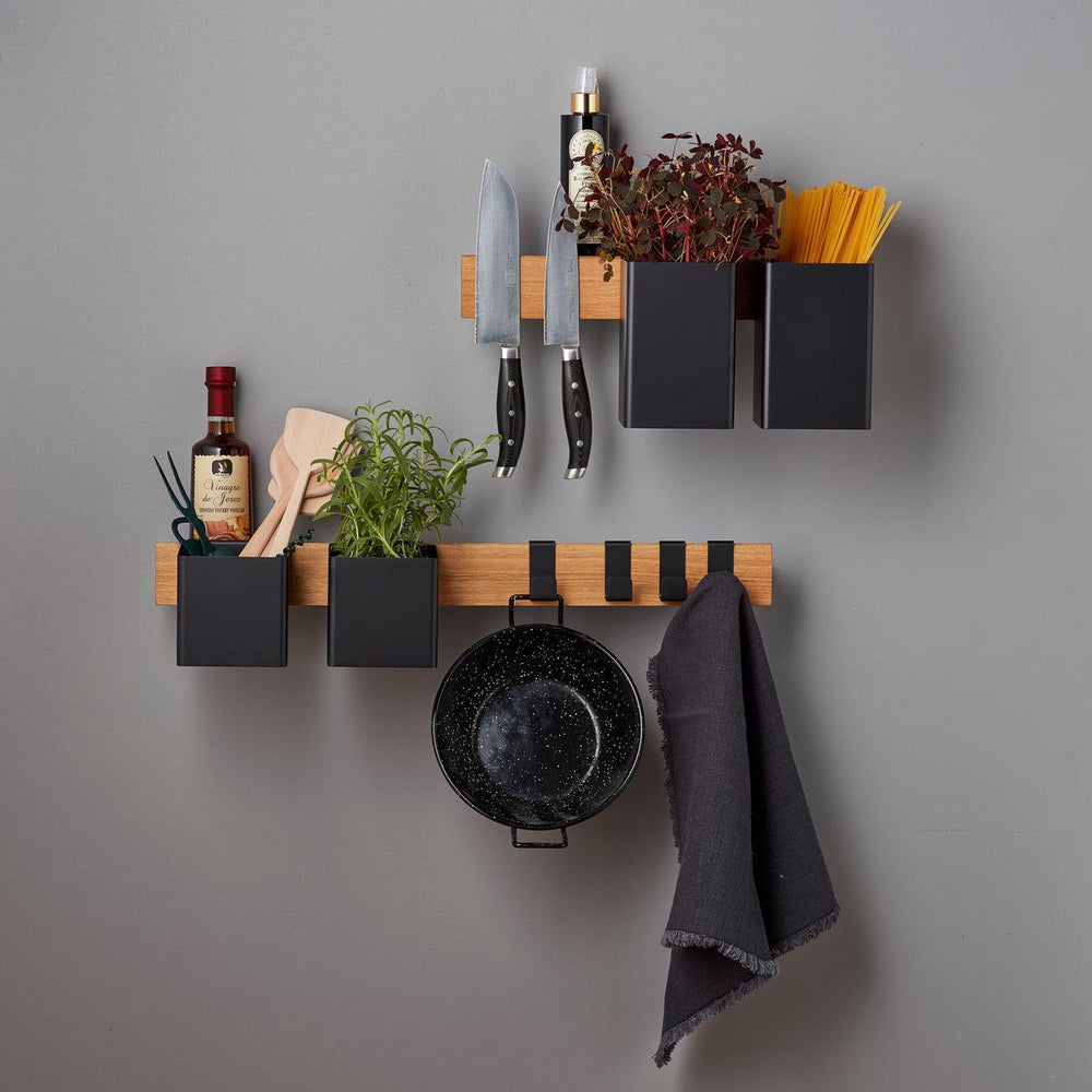 Brug den multifunktionelle hylde i køkkenet til krydderierne, som gallerihylde til dine flotte kogebøger, eller som knivholder. Kombiner fx hylderne med Flex boks til krydderurterne og Flex kaffefilterholder. Tilkøb Flex spejl og Flex knager, og brug Flex i entreen, hvor der fremover altid er styr på nøglerne, da de kan hænge direkte på hylden på grund af den kraftige magnet.