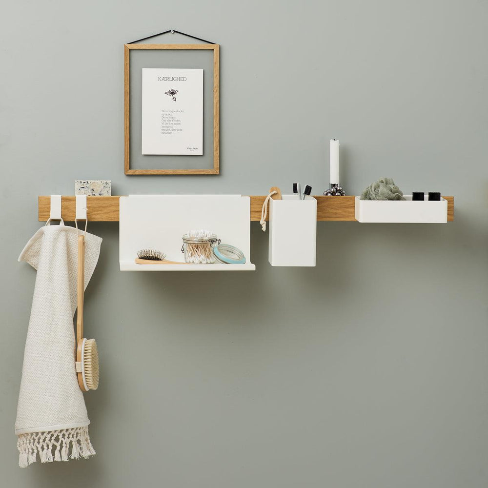 Brug den multifunktionelle hylde i køkkenet til krydderierne, som gallerihylde til dine flotte kogebøger, eller som knivholder. Kombiner fx hylderne med Flex boks til krydderurterne og Flex kaffefilterholder. Tilkøb Flex spejl og Flex knager, og brug Flex i entreen, hvor der fremover altid er styr på nøglerne, da de kan hænge direkte på hylden på grund af den kraftige magnet.