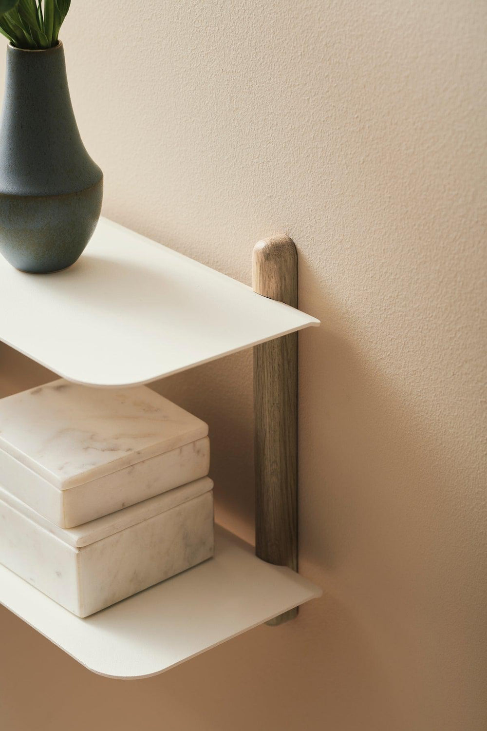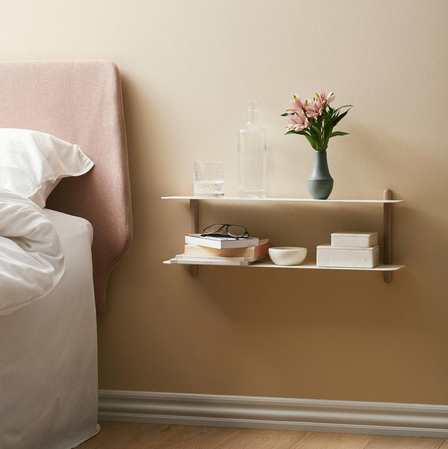 Nivo er en minimalistisk væghylde, der er designet af Böttcher og Kayser for Gejst. Hylden har et rent og fokuseret design uden overflødige elementer, der giver hyldesystemet et svævende og elegant udtryk. Hver lille komponent er gennemtænkt ned til mindste detalje, hvad angår design, form og funktion. Der er ingen synlige skruer, og vangerne er tilført et skråt snit, så hylderne glider lige i, hvilket skaber den flyvende fornemmelse. Hylden er smuk i alle hjemmets rum.
