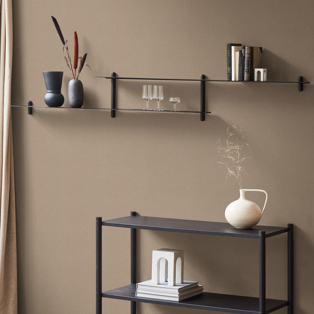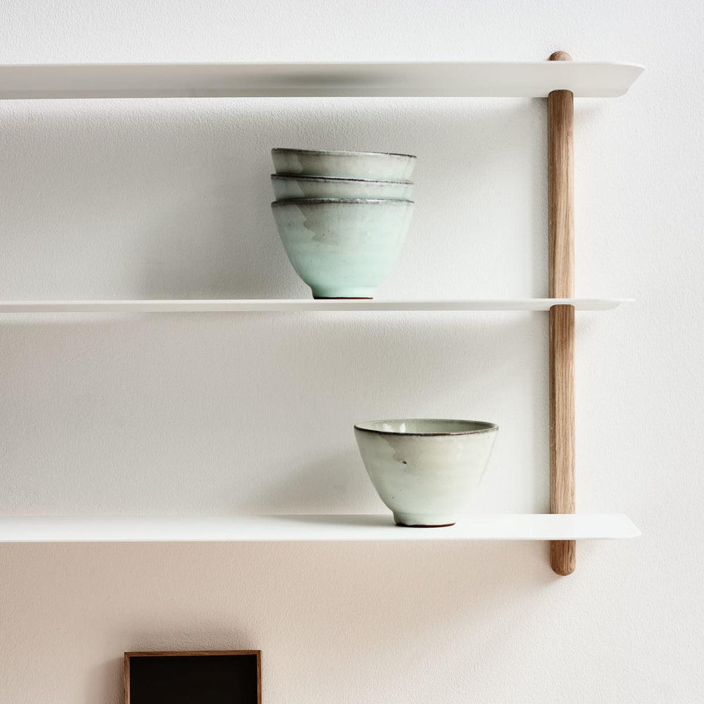 I formgivningen af Nivo hylde stang og hylde kroge går design og funktion ikke på kompromis med hinanden og trods en fordobling af anvendelsesmuligheder bibeholdes de grafisk smukke linjer i Nivo hyldens helhed. Nivo hylde stang er nem at fastsætte og glider let henover Nivo hylden. Dermed kan Nivo hylde stang sættes præcis hvor man ønsker på hylden - helt ude ved kanten eller længere inde ved væggen. Hertil tilføjes de små Nivo hylde kroge - og voilá: et væld af styling muligheder åbner sig.