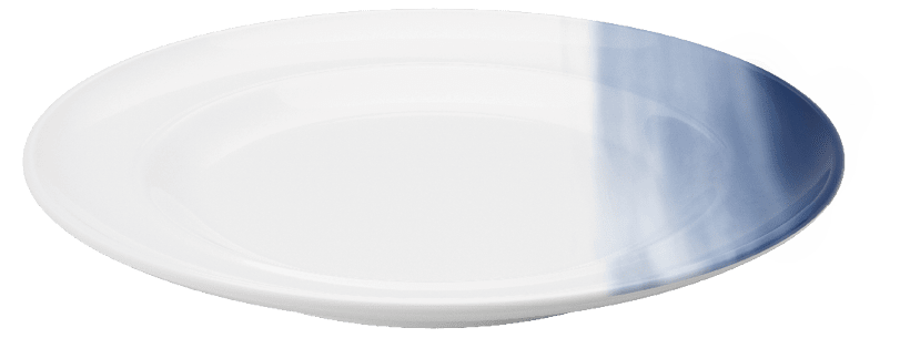 Denne sidetallerken er dekoreret med elegante penselstrøg i graduerede, blå nuancer, som giver porcelænet et smukt og tidløst design.