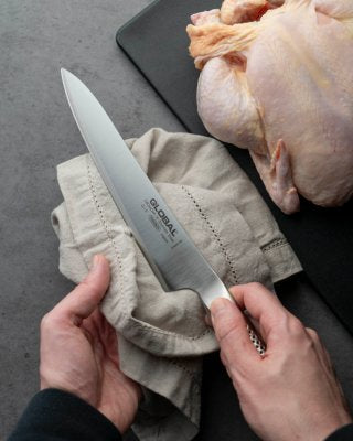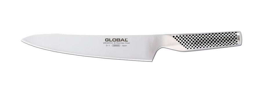 Global, eller Global Classic, er den bredeste og mest kendte Global Series. Serien omfatter en række skarpe knivmodeller, lige fra kødøkser til fleksible filetknive, grøntsagshakkere og små skrælleknive. Knivene er fremstillet i et lag stål og kan genkendes på skaftet med de sorte prikker. Serien indeholder også redskaber og tilbehør, der hjælper dig med at holde dig skarp i køkkenet.