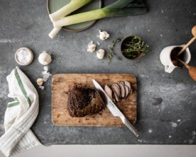 En udskærerkniv minder om en kokkekniv i modellen. Forskellen er, at den har et længere og smallere knivblad. Formen gør det nemmere, når du udskærer, det vil sige skærer kødet i tynde skiver. Kniven kan bruges til både råt og tilberedt kød, samt sushi og sashimi.