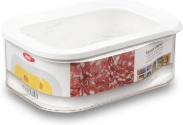 Mepal Modula osteboks med enkel, hvid kant på låget og rist i bunden. Mål: 22,5 x 16 x 7,8 cm. Mepal Modula modulboks hjælper dig med at få overblik i dit køkken! Både boks og låg er gennemsigtige, hvilket gør det nemt at overskue indholdet. Boksen er fremstillet af SAN-plast, som er robust og modstandsdygtig overfor ridser. Velegnet til opvaskemaskine men ikke til mikroovn og fryser.