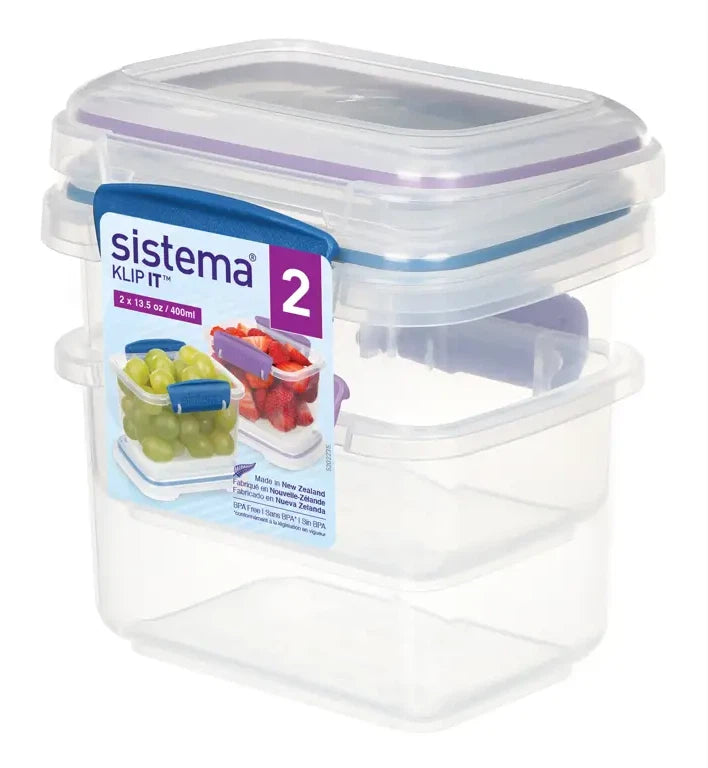 Sistema® Klip IT™ Rectangular 2-Pack x 400ml.