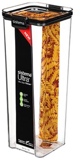Elegant opbevaringsserie i tritan plast fra Sistema® Ultra™. Ultra er en serie af krystalklare, glaslignende opbevaringsbeholdere i en meget slidstærk og brudsikker form, som er både stabelbar, pladsbesparende og effektiv for din køkkenorganisation. Med Sistemas nemme, tætsluttende låseclips og lufttætte forsegling, der holder indholdet frisk i længere tid.