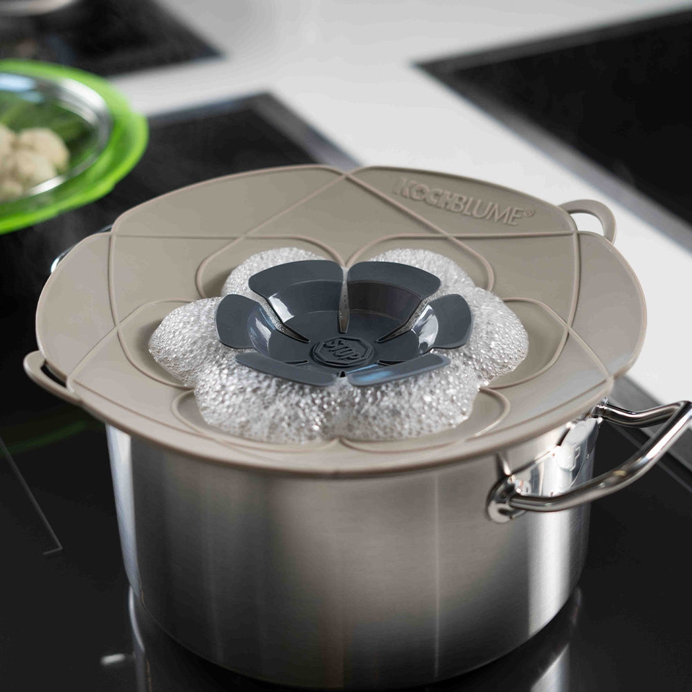 Kochblume er et revolutionerende grydelåg, der gør det let at koge kartofler, ris, pasta, og andre fødevarer, uden at de koger ud over komfur og køkkenbord. Låget kan udover at fungere som overkogningssikring også bruges som stænklåg samt som en handy og simpel dampkoger sammen med en gryde og et traditionelt låg.
