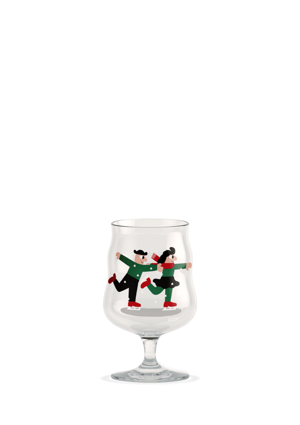Holmegaard x Mikkeller – det bedste af begge verdener til din øl. I tæt samarbejde har Mikkeller og Holmegaard forenet deres håndværk i en serie af ølglas, hvor glas og øl af den højeste kvalitet mødes i en fuldendt sanseoplevelse. Med juleårsglasset får du en smukt dekoreret særudgave af seriens universalglas på 40 cl på stilk og med den klassiske tulipanform til de mørkere og lidt stærkere øl. Nyd Mikkellers humoristiske, enkle og underfundige visuelle univers folde sig ud med brandets maskotter Henry og Sally iklædt julefarver, skøjtende ud i vinteren, mens du nyder din øl. Inden for hver deres håndværk skubber Mikkeller og Holmegaard grænserne for, hvad der kan lade sig gøre og går aldrig på kompromis med hverken kvalitet eller kreativitet. Det er innovation og fornyelse, der danner grundstenene hos både Holmegaard og Mikkeller, og kompromisløst og med skarpt øje for detaljen bliver begge brands ved med at overraske og inspirere. Holmegaard er kendt for at skabe refleksioner i glas gennem generationer. Og serien med Holmegaard x Mikkeller-ølglas er den oplagte gaveidé til ølelskeren. Serveret i hvert sit specialdesignede glas vil du opleve både den enkelte øl og glassets fulde potentiale udfolde sig.