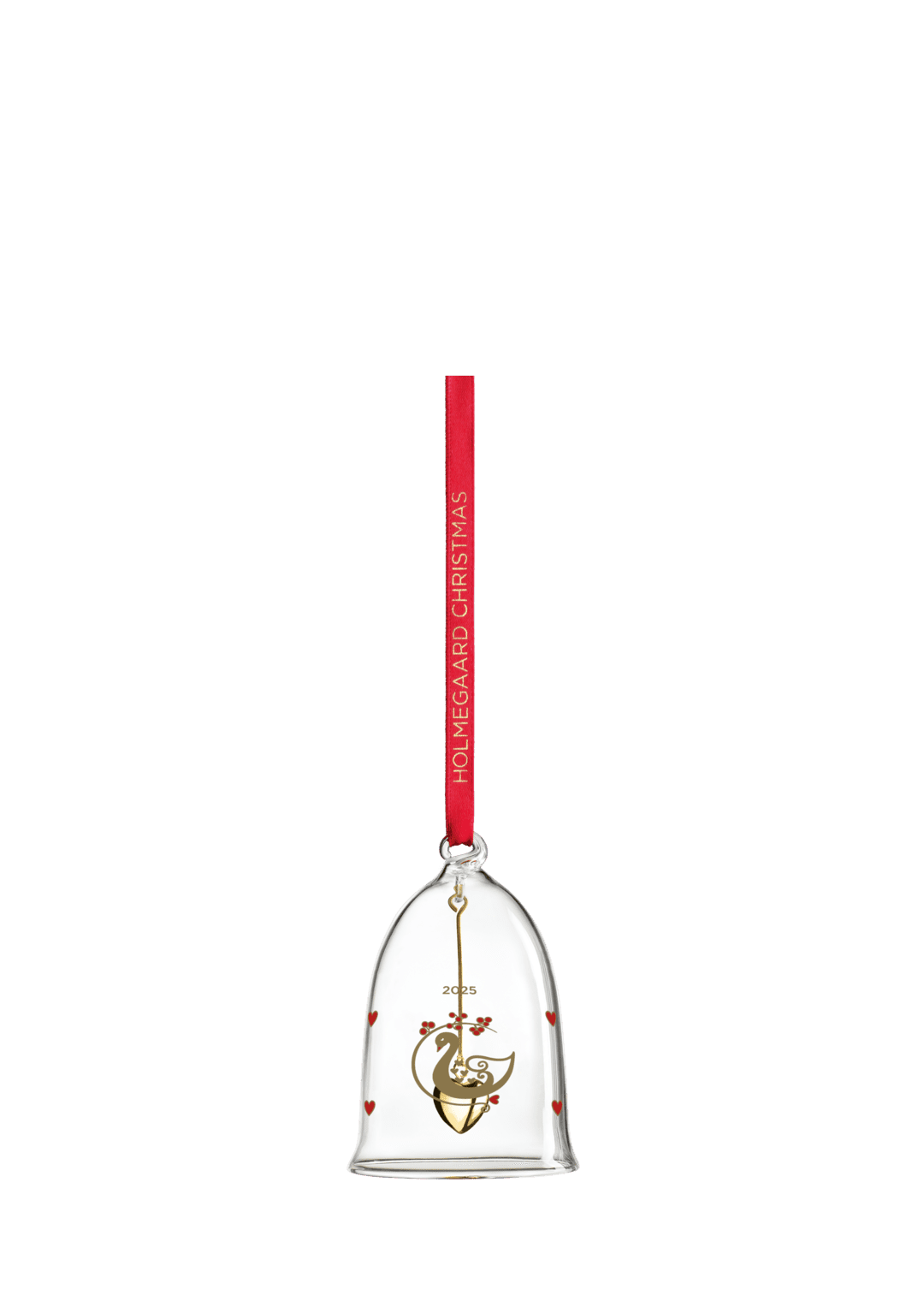 Holmegaard blev grundlagt i 1825. Og med årets glaspynt 2025 fejres 200-årsjubilæet for Holmegaard med udgangspunkt i svanen. Den stolte og elegante fugl er et symbol for Holmegaard, og sammen med små hjerter og en gren med røde vinterbær vil årets motiv smukt og dekorativt udstråle transformation, skønhed og skabe en atmosfære af poetisk glæde. Årets lille juleklokke 2025 fra Ann-Sofi Romme er 8 cm høj og kommer som altid i mundblæst glas. Farverne er holdt klassiske i rød og guld og med en afsluttende metallisk finish, og de små, røde hjerter skaber en hyggelig stemning til hjerternes fest. Den grafiske dekoration er helt i tråd med både juletraditioner og tidens farvetrend med matchende røde silkesnore, der indbyder til ophæng på træet, i vinduet eller på grangrene rundtomkring i hjemmet sammen med resten af den nostalgiske serie. Med sin klassiske juleserie for Holmegaard har Ann-Sofi Romme skabt en enkel og original julefortælling, der for mange er forbundet med genkendelsens glæde og refleksioner over julens romantiske øjeblikke. Hvert år har hun fortalt videre på det juleeventyr, som hun begyndte med sin klokke for Holmegaard tilbage i 1993.