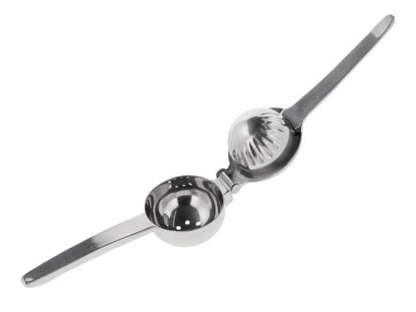 Den klassiske citruspresser af rustfrit stål er enkel at anvende: Citrusfrugten halveres og lægges over hullerne med frugtkødet nedad og skrællen opad. På den måde presses frugtens inderside udad, når du presser håndtagene sammen, så saften løber ud gennem hullerne, mens kerner og frugtkød bliver i presseren. Pres direkte ned i maden, drinken og dressingen og undgå spild af saft. Velegnet til limefrugter, citroner og små appelsiner. Længde 21 cm, indre diameter 6 cm. Vaskes i opvaskemaskine før første brug.