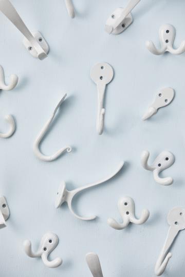 Lille dobbeltknage i metal, der giver praktisk ophæng til hverdagens småting. Perfekt til entré, køkken eller badeværelse og nem at placere, selv hvor pladsen er trang.